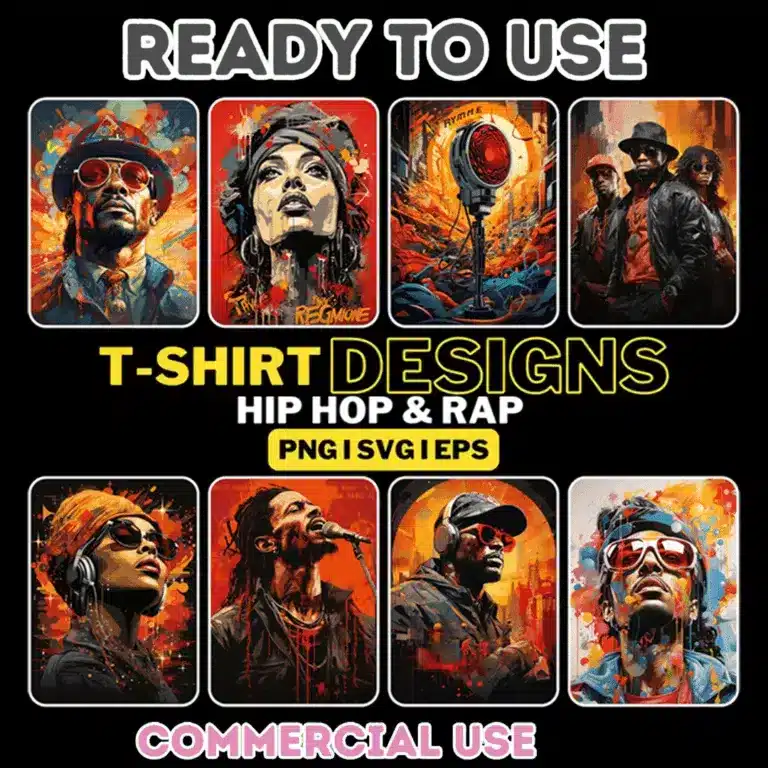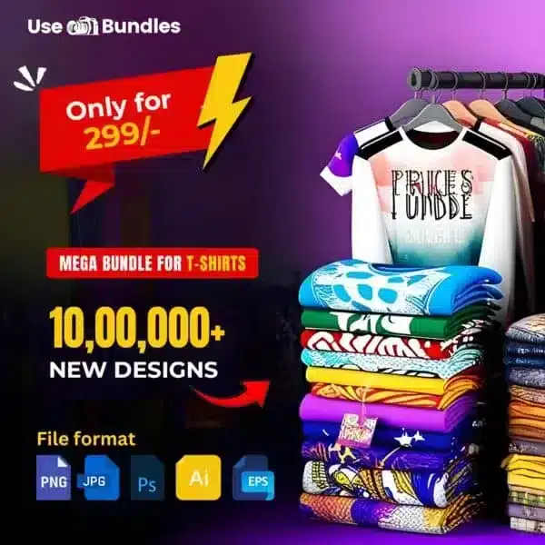 These designs are to be sold on T-shirts, mugs, posters, bags etc,. i.e on physical products only. This means your customer’s can buy your products with our designs on them. The designs themselves cannot be sold separately like we’re selling them as a bundle.